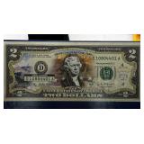 $2 COLORIZED DELAWARE CURRENCY NOTE IN FOLIO |