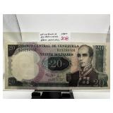 1987 VENEZUELA 20 BOLIVARES UNC CURRENCY NOTE |