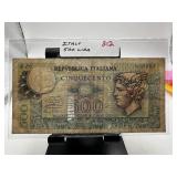 ITALY 500 LIRA CURRENCY NOTE |