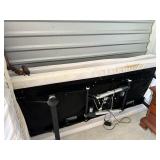 Here are just a few of the items included in this sale: Adjustable King Size Bed Lexington Dresser Lexington Night Stand Drexel Jewelry Tower Colonial Furniture By Baumritter Round Coffee Table Large Antique Armoire Trunk Vintage Ethan Allen Wood China Hutch Ethan Allen Dining Table W/ Two Leaves Three Ethan Allen Chairs And One MCM College Chair Large Wood Trunk On Casters Metal Turquoise And Copper Bakers Rack Large Matching Bookshelves Laminate Bookshelf With Cabinet Vintage Project Chair Green Painted Wood Desk Vintage Wood Desk Vintage File Cabinet Blue Metal Storage Lockers Samsung TV Vizio TV Apex TV Yamaha Subwoofer, Toshiba DVD Player And Retro Phone Vintage Electronics W/ CB Radio Vintage Pyrex Bowls And Bread Pan Three Cast Iron Skillets Incl. Wagner Ware Nuwave Infrared Oven And Blender - NIB Copper Cookware, Nuwave Pizza, Aprons And More Vertisserie, Rotofryer, Foreman Grill And More Kitchen Storage Incl. Vintage Corning Ware Vintage And Retro Kitchen Appliances Vintage Kitchen Incl Tupperware Starlight Vintage China From Japan Corelle Dishes And Green Glassware Clear Glass Serveware Incl French Crystal Flutes 1847 Rogers Silverware And Silverplate Tray Mystery Vintage Linens Martha Cave Painting And Lamp Glass White Frosted Christmas Tree And Wreath Dean Martin, Blockbusters And More DVDs And CDs Vintage LPs 45 Mystery Lot Incl Beatles Hardback Collections And More Mystery Paperbacks And More Mystery Children’s Books And Toys Titleist Golf Clubs And Wall Hanging Mystery Fishing Craftsman Metal Tool Chest Tradesman Bench Drill Press, Boxed NIB Wet Saw, Sawhorses, Level Craftsman And Kobalt Toolkits Drill, Dremel And More Electrical, Load Center, And More Werner Extension Ladder, 4ft Ladder & 2ft Wood Ladder True Temper Wheel Barrow And More Shovels And Rakes Post Hole Diggers, Pitchforks And More