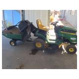 RIDE ON JOHN DEERE MOWER WITH TRAILER IN WORKING CONDITION
