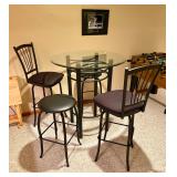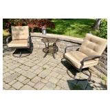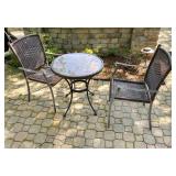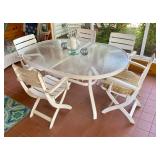 - Patio Dining Set with Glass Topped Table and Armchairs