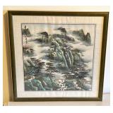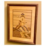 - Vintage Marquetry Hudson River Wood Inlay Lighthouse Rock Nelson MCM