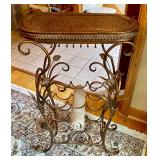 - Woodard Maple Leaf Wrought Iron Armchairs and Glass Top Round Side Table