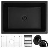 Undermount Kitchen Sink, 27 Inch Matte Black Granite Composite Sink, Single Bowl Kitchen Sink, Small Kitchen Sink With Accessories, Granite Kitchen Sink, Black Sink Kitchen