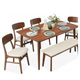 6-Piece Mid-Century Modern Upholstered Wooden Dining Set w/ 4 Chairs, Bench, THIS ITEM CONTAINS ONLY 1 BOX!
