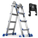 HBTower Ladder, A Frame 4 Step Extension Ladder, 17 Ft Multi Position Ladder with Removable Tool Tray and Stabilizer Bar, 330 lbs Capacity Telescoping Ladder for Household and Outdoor Work