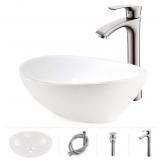 This item was previously opened BUT APPEARS TO BE NEW! NO OBVIOUS DAMAGE! WITH FACTORY PACKAGING. INCLUDES FAUCET AND POPUP DRAIN! STOCK PHOTO! PLEASE SEE IMAGES FOR ACTUAL ITEM! No refunds. Please come to Preview to verify the condition! Retail:$109.69
