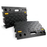 4" high 2-Piece Portable Automotive Curb Ramp, Heavy-Duty Plastic Threshold Ramp Track Interlocking Step Ramp Structure 6600 Lbs Load Capacity for Cars, Wheelchairs, Bikes, Motorcycles