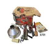 12G and 20G Shotgun casings for loading. Many lots of New Folding Knives. Museum-quality antiques(spinning wheels, tools, mechanicals, etc. Also, 30+ BOX LOTS, full and overflowing.