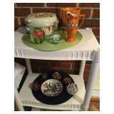 Huge amount of baseball cards sealed in boxes 1970,1980-1990's, many loose cards from file cabinet, figurines, baseball books, baseballs, small bats framed prints by Ben Hampton: Winter Refuge, The Stump, High Splendor framed in barn wood Many playing cards, old games, puzzles, Large collection of old playing marbles Vinyl record albums....Good rock n roll upstairs & classic downstairs Old locks, keys & many more keys Linden & 31 day Regulator clocks Several wall mirrors, many framed prints, rolled posters, movie posters from theaters Sewing notions, many thimbles, Jars of old buttons, fabric Glassware: Depression Glass Moderntone cobalt blue by Hazel-Atlas Glass 1934 Patrician Spoke color Golden Glo 1933 Madrid yellow by federal Glass Co. 1932 Royal Ruby (dark red) by Anchor Hocking Glass Co. 1938-1960 Vintage white milk glass American Sweetheart pink & white monax MacBeth- Evans Glass Co 1930-36 Holiday Button n Bows pink 1947-50 Iris clear & iridescent by Jeannette Gass Co. Blue Bubble Fireking tableware Cameo Ballerina green Florentine No. 2 by Hazel Atlas 1932-35 Lorain Basket by Indiana Glass Co. 1929-39 Colonial Fluted "Rope" by Federal Glass Co. 1928-33 Petal ware depression glass Harmony House Daphne set of fine china Early American Prescut 1960 by Anchor Hocking Kitchen packed: Appliances, sets o glasses, canned goods, Corelle ware, Rose Chintz set dishes, Corning set dishes, cookware, mixing bowls, Corning ware baking. Several rolling pins, coffee grinders, funnels, cookie cutters, juice reamers, pizza roller, Tom's toasted peanut store jar with lid, Premium cracker tins. Mammy cookie jar,salt/ pepper shakers Milk Churns: antique wood turn paddle churn, 4 crock churns, 3 metal milk cans, wood wash board X-Large gathering basket Huge collection of picture frames mostly large sizes Antique underwood typewriter, Remington Rand Adding machine, Antique shoe store Stool, Large wooden barrel with lid, Several advertising clocks, old Weigh scales with a pea Lunchboxes, small child's old-school desk, Wooden crates Fishing lures, reel and rods