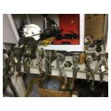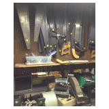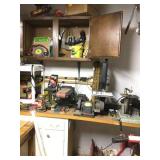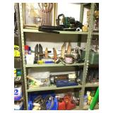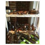 Tools: Large collection of 19 antique wood wood planes, 2 draw knives Oh pipe wrenches, Huge variety of antique totals Black and decker Power band saw, grinder, jigsaw, belt sander, Snapper tiller, home craft table saw, push mower, Wood clamps, C clamps, weed-eater, gas power blower, Collection of Hand saws, levels, Router saber saw with table, hammers, Collection of old oil cans, Metal flashlight collection, many tools Collection of oil lanterns in bright colors Large selection of nails and many supplies A basement that is so packed out it is hard to believe!! Many yard tools, wheel barrow, hoses, antique funnels & gas cans.