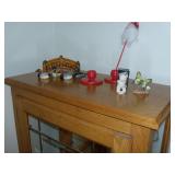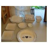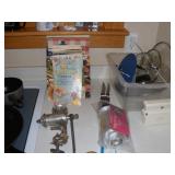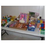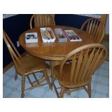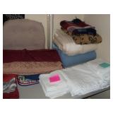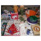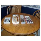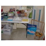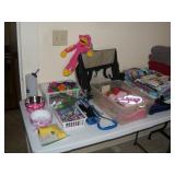 Burgandy leather sofa & chair & ottoman, oak end tables & coffee table, lamps - floor & table, recliner, occasional chair, pair of Victorian side chairs with needlepoint seats,usual kitchen small appliances, pots, pans, baking dishes, Corelle, 28pc Holly & Ivy Christmas dish set including 6 matching glasses, paintings, prints, mirror, oak round pedestal extension table with 4 chairs, keyhole desk, cherry drop leaf table with fluted legs, 2 full size beds equipped, white painted bedroom suite consisting of desk & chair, chest of drawers, night stand, twin headboard, desk chair, copier/printer, Singer sewing machine, toys, Barbies, Legos, games, Fisher Price toys, stuffed animals, ladiesclothing, linens, bedding, luggage, 2 bookcases, canoe, Shop Vac, step ladder, much misc. Quality Moving Sale