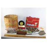 CATALOG TEXT BELOW: 1 - Quilter's Lot 2 - Wooden Crate 3 - Plastic Storage Tote 4 - Lot of Children's Audio Cassette Books 5 - 2 Sets of Housing Blueprints 6 - Organizer 7 - Table Lamp 8 - Archiving Booklet (never used) 9 - Metal Bird Feeder 10 - Lot of Bible Study Books & Church Music Books 11 - "Cutter" Quilt 12 - Decorative Pineapple, Rooster Basket & Pedestle 13 - Sony Mini Cassette Recorder 14 - Olympus & Radio Shack Mini Cassette Players 15 - Holland Handicraft Chocolate Mold Bunny Rabbit Mold #4154 16 - Venetian Glass 17 - Apple TV Box 18 - 3 Sets of Ring Sizers 19 - Lot of Kitchen Utensils and Tools 20 - Lot of Hardware 21 - Over the Tub Safety Handle 22 - Lot of Assorted Jewelry, Belts & Travel Clock 23 - Bose "Quiet Comfort 3" Headphones 24 - Vintage Cuff Links & Tie Pin Jade 25 - 2 Men's Watches US Navy & Timex 26 - Lot of Assorted Children's Books 27 - Vintage Classroom Alphabet Cards 28 - Antique Red Handled Wood Rolling Pin 29 - Drew Bledson Football Card 30 - Rare Antique Prattware Red Terra Cotta Meat Jar 31 - Mid Century Modern Table Lighter 32 - Pair of Amber Stained Glass MIni Oil Lamps 33 - Large Sportbrella Outdoor Umbrella 34 - Atomic Salomon Skis and Poles 35 - Pair of Rossignol Cut Snow Skis 36 - Pair of Old Wodd Snow Skis 37 - NEW Body Classic BodyBlade 38 - Garcia Conolon Lee Wulff Fishing Rod New Old Sto Appears new from the 1970's Garcia Conolon LeeWulff Road New Old Stock 39 - Lot of Marbles 40 - Pair of Vintage Eyeglasses 41 - NEW Leather Guitar Strap 42 - Lot of Assorted HDMI & Audio Cables & More 43 - Lot of Assorted Hats 44 - Lot of Ammunition Ammo 22 High Velocity 45 - Stainless Flask 46 - 7 Like NEW Vintage Sovenier Pillow Shams 47 - Vintage Knight KN4401 Reel to Reel Tape Deck 48 - Set of Rooster DInnerware "Windham Manor" 49 - Large lot of Antique Stereoview Cards 50 - Montana Silversmith's Watch WOW 51 - Green Fostoria Coin Dot Candle Holder 52 - Set of Brass Elephant Bookends 53 - Lot of Corning Ware Plates 54 - 2 Ladies Bracelets 55 - Haws Watering Can Brass Spout 56 - Chair Back Covers 57 - Sylvania Color Television 58 - Tow Strap/Chain 59 - Lot of Assorted Tools 60 - Hardware Organizer 61 - Lot of Assorted Ephemera 62 - Wool Yarns 63 - Rock Bar 64 - Portable Gage Tester Prime Milwaukee 65 - xBox 360 Game Console 66 - Wood Crate 67 - License Plate Pig 68 - Battery Operated Window Candles 69 - Beautiful Vanity Bench or Stool 70 - Live Trap 71 - Black and Decker Iron 72 - Pair of Candlestick Lamps 73 - 3 Cast Iron Gem Pans-All for one money! 74 - Liquor Decanter with Ducks 75 - New American No 8 Cast Iron Waffle Iron 76 - Cake or Desert Pedestal with Dome 77 - Beautiful Serving Bowl and Lidded Box 78 - Fitz & Floyd Canister Set 79 - Glass Mixing Bowls - Nesting Bowls 80 - Wood Lazy Susan and Small Crate 81 - Tennis Balls by Wilson 82 - Vintage RayOVac Flashlight 83 - Square Cast Iron Skillet 84 - Round Cast Iron LId 85 - Tsukamoto Mashiko Pottery for Takanashi Vase Tsukamoto Mashiko Pottery for Takanashi 86 - Cranberry Visions Sauce Pans with Lids 87 - Antqiue Bavarian Creamer and Sugar 88 - Serving Bowl and Lidded Candy Dish 89 - 3 Glass Pie Plates 90 - Red Champagne Glasses 91 - Cranberry Visions Corning Ware Casserole with Lid 92 - Currier & Ives Plates by Harkerware 93 - Willow Tree Figurine "With Love" 94 - Fancy Painted Egg with Bird 95 - Psion Organiser II Model XP Psion Organiser II Model XP 96 - Marvel Star Wars 021 Aaron Molina Milla Comic Book Aaron Molina Milla Comic Book 97 - Assorted Star Wars Comic Books 98 - Assorted Star Wars Comic Books 99 - Assorted Hot Wheels Matchbox Cars 100 - "Saturday Nite" Sign 101 - Nike Zoom Force 1 Danny Kass Boots Size 11.5 102 - Vintage Christmas Ornaments 103 - Mid Century Condiment Caddy Set Japan 104 - Tea Pot 105 - Sling Shot 106 - Air Pump and Cultivator 107 - Vintage Record Albums LP's Barry Manilow & 108 - Vintage Kiss Albums Lps & Others 109 - Carved Wood Bowl and Marble Bowl 110 - Vintage Christmas Ornaments 111 - Vintage Christmas Ornaments 112 - Vintage Hazel Atlas Child's Cup 113 - Vintage Christmas Ornaments -1 Masonic 114 - Carved Springerle Rolling Pin & Kraut Box 115 - Crown Com-Tech 400 116 - Lot of Assorted Canning Fruit Mason Jars 117 - 4 Cans of 134a Refrigerant 118 - Polaroid & Maxim Cameras 119 - Metal Milk Crate 120 - Kerr Wide Mouth Mason Caps and Jars 121 - Lot of Assorted Tools 122 - Dyno Sewing Machine Attachment 123 - :Lot of Star Wars Comic Books 124 - Country Musicf Jaohnny Cash Magazine 125 - Lot of Drum Parts 126 - Coor's Beer Advertising Pool Cue 127 - Galvanized Metal Milk Crate 128 - Lot of Mason Fruit Canning Jars 129 - Lot of Jars 130 - Sportsways Iron Weights 131 - Bell Bicycle Air Pump 132 - Lot of Assorted Glasses-All for one money! 133 - 2 Weight Lifting Bars and Weights 134 - Galvanized Bucket and Waste Can 135 - 2 Presidential Coin Collectors Cases 136 - Vintage Metal Kerosene Can 137 - Vintage Anheuser Busch Beer Bottle Crate 138 - Wilson's Corned Beef Wooden Crate 139 - VIntage Coca Cola Cooler 140 - Cobalt Blue Glass-Mount Vernon DIsh & Bottle 141 - Lot of Glass Insulators 142 - Fly Swatter 143 - "Big Chief" Bottle 144 - Hindle & Co Blackpool Cod Bottle w/ Marble Neck Hindle & Co 145 - Assorted Mason Jars 146 - 3 Drey Canning Fruit Jars 147 - 6 Atlas Mason Jars 148 - Group of Ball Canning Jars 149 - Cranberry Bohemia Glass Vase Looks like Mary Gregory but I am not sure. 150 - Sherwin-Williams Paint Coin Bank 151 - Peanut Jar 152 - Jimbo Pure Soda Water Bottle 153 - Early 8 Sided Heinz Ketchup Bottle 154 - R.S. Nye & Co Tremont Boston Bottle R.S. Nye & Co Tremont Boston 155 - Early Sportsman Club Bottle 156 - Pottery Bottle 157 - 2 Vintage Anchor Hocking Green Glasses 158 - Antique Porcelain Bisque High Relief Arnat 159 - Collectible Soda Glasses Pepsi & 7 Up 160 - Big Chief Bottle 161 - Darwin Bottle with Marble Neck 162 - Vintage Hamilton Mettwurst Jar 163 - Vintage Sunshine Coffee Jar 164 - Partial Socket Set 165 - Blue Glass Insulators 166 - Chinese Check