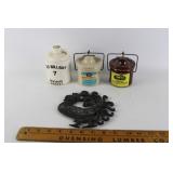 CATALOG TEXT BELOW: 1 - Quilter's Lot 2 - Wooden Crate 3 - Plastic Storage Tote 4 - Lot of Children's Audio Cassette Books 5 - 2 Sets of Housing Blueprints 6 - Organizer 7 - Table Lamp 8 - Archiving Booklet (never used) 9 - Metal Bird Feeder 10 - Lot of Bible Study Books & Church Music Books 11 - "Cutter" Quilt 12 - Decorative Pineapple, Rooster Basket & Pedestle 13 - Sony Mini Cassette Recorder 14 - Olympus & Radio Shack Mini Cassette Players 15 - Holland Handicraft Chocolate Mold Bunny Rabbit Mold #4154 16 - Venetian Glass 17 - Apple TV Box 18 - 3 Sets of Ring Sizers 19 - Lot of Kitchen Utensils and Tools 20 - Lot of Hardware 21 - Over the Tub Safety Handle 22 - Lot of Assorted Jewelry, Belts & Travel Clock 23 - Bose "Quiet Comfort 3" Headphones 24 - Vintage Cuff Links & Tie Pin Jade 25 - 2 Men's Watches US Navy & Timex 26 - Lot of Assorted Children's Books 27 - Vintage Classroom Alphabet Cards 28 - Antique Red Handled Wood Rolling Pin 29 - Drew Bledson Football Card 30 - Rare Antique Prattware Red Terra Cotta Meat Jar 31 - Mid Century Modern Table Lighter 32 - Pair of Amber Stained Glass MIni Oil Lamps 33 - Large Sportbrella Outdoor Umbrella 34 - Atomic Salomon Skis and Poles 35 - Pair of Rossignol Cut Snow Skis 36 - Pair of Old Wodd Snow Skis 37 - NEW Body Classic BodyBlade 38 - Garcia Conolon Lee Wulff Fishing Rod New Old Sto Appears new from the 1970's Garcia Conolon LeeWulff Road New Old Stock 39 - Lot of Marbles 40 - Pair of Vintage Eyeglasses 41 - NEW Leather Guitar Strap 42 - Lot of Assorted HDMI & Audio Cables & More 43 - Lot of Assorted Hats 44 - Lot of Ammunition Ammo 22 High Velocity 45 - Stainless Flask 46 - 7 Like NEW Vintage Sovenier Pillow Shams 47 - Vintage Knight KN4401 Reel to Reel Tape Deck 48 - Set of Rooster DInnerware "Windham Manor" 49 - Large lot of Antique Stereoview Cards 50 - Montana Silversmith's Watch WOW 51 - Green Fostoria Coin Dot Candle Holder 52 - Set of Brass Elephant Bookends 53 - Lot of Corning Ware Plates 54 - 2 Ladies Bracelets 55 - Haws Watering Can Brass Spout 56 - Chair Back Covers 57 - Sylvania Color Television 58 - Tow Strap/Chain 59 - Lot of Assorted Tools 60 - Hardware Organizer 61 - Lot of Assorted Ephemera 62 - Wool Yarns 63 - Rock Bar 64 - Portable Gage Tester Prime Milwaukee 65 - xBox 360 Game Console 66 - Wood Crate 67 - License Plate Pig 68 - Battery Operated Window Candles 69 - Beautiful Vanity Bench or Stool 70 - Live Trap 71 - Black and Decker Iron 72 - Pair of Candlestick Lamps 73 - 3 Cast Iron Gem Pans-All for one money! 74 - Liquor Decanter with Ducks 75 - New American No 8 Cast Iron Waffle Iron 76 - Cake or Desert Pedestal with Dome 77 - Beautiful Serving Bowl and Lidded Box 78 - Fitz & Floyd Canister Set 79 - Glass Mixing Bowls - Nesting Bowls 80 - Wood Lazy Susan and Small Crate 81 - Tennis Balls by Wilson 82 - Vintage RayOVac Flashlight 83 - Square Cast Iron Skillet 84 - Round Cast Iron LId 85 - Tsukamoto Mashiko Pottery for Takanashi Vase Tsukamoto Mashiko Pottery for Takanashi 86 - Cranberry Visions Sauce Pans with Lids 87 - Antqiue Bavarian Creamer and Sugar 88 - Serving Bowl and Lidded Candy Dish 89 - 3 Glass Pie Plates 90 - Red Champagne Glasses 91 - Cranberry Visions Corning Ware Casserole with Lid 92 - Currier & Ives Plates by Harkerware 93 - Willow Tree Figurine "With Love" 94 - Fancy Painted Egg with Bird 95 - Psion Organiser II Model XP Psion Organiser II Model XP 96 - Marvel Star Wars 021 Aaron Molina Milla Comic Book Aaron Molina Milla Comic Book 97 - Assorted Star Wars Comic Books 98 - Assorted Star Wars Comic Books 99 - Assorted Hot Wheels Matchbox Cars 100 - "Saturday Nite" Sign 101 - Nike Zoom Force 1 Danny Kass Boots Size 11.5 102 - Vintage Christmas Ornaments 103 - Mid Century Condiment Caddy Set Japan 104 - Tea Pot 105 - Sling Shot 106 - Air Pump and Cultivator 107 - Vintage Record Albums LP's Barry Manilow & 108 - Vintage Kiss Albums Lps & Others 109 - Carved Wood Bowl and Marble Bowl 110 - Vintage Christmas Ornaments 111 - Vintage Christmas Ornaments 112 - Vintage Hazel Atlas Child's Cup 113 - Vintage Christmas Ornaments -1 Masonic 114 - Carved Springerle Rolling Pin & Kraut Box 115 - Crown Com-Tech 400 116 - Lot of Assorted Canning Fruit Mason Jars 117 - 4 Cans of 134a Refrigerant 118 - Polaroid & Maxim Cameras 119 - Metal Milk Crate 120 - Kerr Wide Mouth Mason Caps and Jars 121 - Lot of Assorted Tools 122 - Dyno Sewing Machine Attachment 123 - :Lot of Star Wars Comic Books 124 - Country Musicf Jaohnny Cash Magazine 125 - Lot of Drum Parts 126 - Coor's Beer Advertising Pool Cue 127 - Galvanized Metal Milk Crate 128 - Lot of Mason Fruit Canning Jars 129 - Lot of Jars 130 - Sportsways Iron Weights 131 - Bell Bicycle Air Pump 132 - Lot of Assorted Glasses-All for one money! 133 - 2 Weight Lifting Bars and Weights 134 - Galvanized Bucket and Waste Can 135 - 2 Presidential Coin Collectors Cases 136 - Vintage Metal Kerosene Can 137 - Vintage Anheuser Busch Beer Bottle Crate 138 - Wilson's Corned Beef Wooden Crate 139 - VIntage Coca Cola Cooler 140 - Cobalt Blue Glass-Mount Vernon DIsh & Bottle 141 - Lot of Glass Insulators 142 - Fly Swatter 143 - "Big Chief" Bottle 144 - Hindle & Co Blackpool Cod Bottle w/ Marble Neck Hindle & Co 145 - Assorted Mason Jars 146 - 3 Drey Canning Fruit Jars 147 - 6 Atlas Mason Jars 148 - Group of Ball Canning Jars 149 - Cranberry Bohemia Glass Vase Looks like Mary Gregory but I am not sure. 150 - Sherwin-Williams Paint Coin Bank 151 - Peanut Jar 152 - Jimbo Pure Soda Water Bottle 153 - Early 8 Sided Heinz Ketchup Bottle 154 - R.S. Nye & Co Tremont Boston Bottle R.S. Nye & Co Tremont Boston 155 - Early Sportsman Club Bottle 156 - Pottery Bottle 157 - 2 Vintage Anchor Hocking Green Glasses 158 - Antique Porcelain Bisque High Relief Arnat 159 - Collectible Soda Glasses Pepsi & 7 Up 160 - Big Chief Bottle 161 - Darwin Bottle with Marble Neck 162 - Vintage Hamilton Mettwurst Jar 163 - Vintage Sunshine Coffee Jar 164 - Partial Socket Set 165 - Blue Glass Insulators 166 - Chinese Check