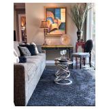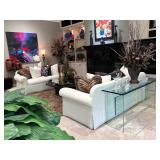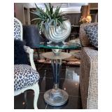 - ‘Royal Staff’ Table Lamps with Bronze Finish and an ‘Espigas’ Lounge Table with Beveled Glass Top, Iron and Gold Leaf Accents..