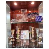 - An assortment of Crystal from Orrefors, Nambe to Waterford-‘Lismore’ and others, Baccarat ‘Diva’ and ‘Architecture’, Daum Stemware to some Czech Bohemian ‘Cut to clear’ Cobalt Blue, Vintage Venetian Murano Candlestick Holders and Glassware, Vietri Glass Vase and more..