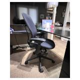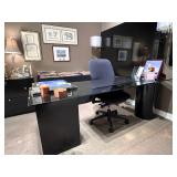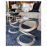 - Super Contemporary ’Free Position’ Polyedro Desk with Satin Nickel Finishes and Glass Tops and Lateral File Cabinet..