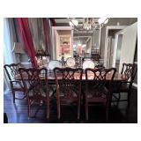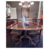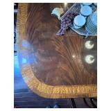 - Flame Mahogany Heritage Heirloom Dining Table with Inlaid Satinwood Banding and Two (2) Leaves..