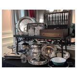- Nambé Pewter Serving Pieces, some Melamine and Glass Trays, Cake Stands and more..