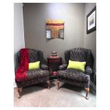 - Pair of Wingback Chairs with Contemporary Print Fabric and Bombay Accent Table..