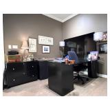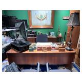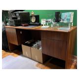 - Vintage Mid Century Style Desk and Credenza with Walnut Veneer..