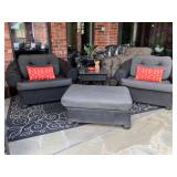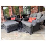 - A pair of Lloyd Flanders ‘Casa Grande’ Chair and a Half with Ottoman from Wicker Paradise- Two (2) additional Sets of Replacement Cushions Included..