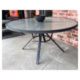 - Cast Aluminum Tropitone 54” Rd Dining Table with Obscure Glass Top..
