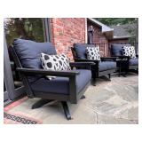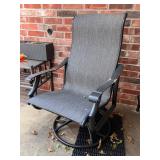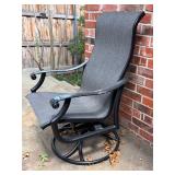 - Aluminum Tropitone ‘Mainsail’ and ‘Montruex’ High Back Sling Rocker/Swivel Armchairs with Textured Obsidian Finish..