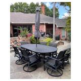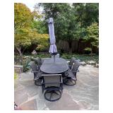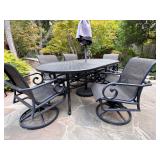 - Aluminum Tropitone ‘Diore’ Collection Three (3) Piece Bistro Collection- Two (2) Swivel Rocking Chairs and Granite Top Side Table..