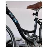 - Men’s Trek 7500 Multitrack Hybrid Bicycle in Sienna Red with Brushed Aluminum and Women’s Trek 720 Touring Bicycle in Black..