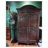 - A Vintage Hekman Style French Country Armoire/Entertainment Unit with Carved Accents and Brass Details..