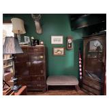- Classic Solid Oak Six (6) Rifle Vintage Gun Cabinet with Storage..