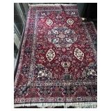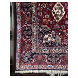 - Vintage Handwoven Oriental Mashad Area Rug in Navy and Burgundy..