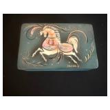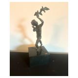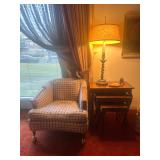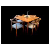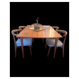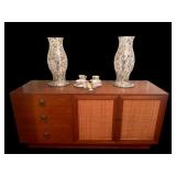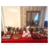 Dining Room: Mid-Century Dining Table/Chairs by Drexel Vintage Ram Figure by Alfaraz Victorian Parlor Table Mid-Century "Kale" Walnut Cane Front Cabinet 1968 Bronze Figure by C. Jere Vintage Bronze Figure on Amethyst Sasha Brostoff Box Hummel Figurines