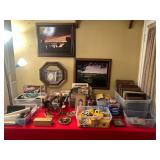 Den: Mid Century Limestone Top Coffee Table Tons of Vintage Photos & Ephemera Mid-Century Desk Vinyl, Cassettes, VHS, Reel Tapes Large United Air Desk Model Plane, Pan Am Plane Map Collection (Ireland)