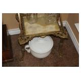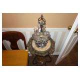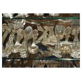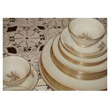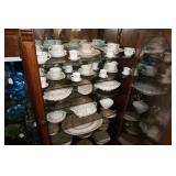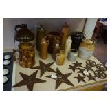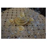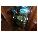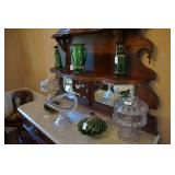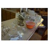 Glassware, China, Porcelain, Pottery and crystal Lenox harvest pattern China set w/ matching stemware, Hummel's, Blue depression glass, Vintage pressed and cut glass, Henry Alcock & Co English China set, Etched crystal covered candy dishes, Vintage cake plates, Green depression glass, Porcelain figurines, Decanters, Old crocks and pottery pitchers, Antique pottery whiskey jugs, Fireking, Misc vintage stemware and plates, German porcelain, Art Glass, Old ball jars, Crystal chandelier lamps, Antique wash basins & pitchers, Assortment of unique antique bottles, Milk glass, Antique Gillinder & Sons frosted lions head glassware collection,