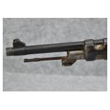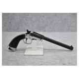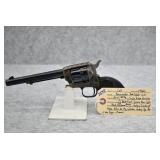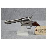 25R. Cimarron – Mod. Wyatt Earp-Buntline – 45 Colt Single Action Revolver – w/10” Barrel w/Blade Front Sight and Notch Rear Sight – Blued/Case Hardened Finish – w/Smooth Wood Grips w/Wyatt Earp Badge on Right Side of Grip – As New