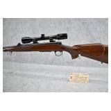 64R. Remington – Mod. 722 – 222 Rem. Bolt Action Rifle – w/26” Barrel w/Ramp Blade Front Sight and Adjustable Rear Sights – Blued Finish – w/Smooth Pistol Grip Wood Stock w/Pachmayr Red Rubber Butt Pad – w/2pc. Bases