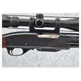363R. Remington – Mod. 760 Gamemaster Carbine – 308 Win. Cal. Pump Action Rifle – w/18½” Barrel w/Beaded Front Sight – Missing Rear Sight – Blued Finish – w/Pressed Checkered Capped Pistol Grip Wood Stock w/Pachmayr Recoil Pad and Forearm – w/Tasco 2-7x32 Scope - w/Redfield Rings and Base – w/Mag