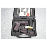 402R. Ruger – Mod. SR9 Stainless – 9mmx19 Cal. Semi-Auto Pistol – w/4” Barrel w/3-Dot Sights – Green/Black Two-Tone Finish – w/Checkered Green Polymer Frame – w/Two 17Rd Factory Detachable Mags – w/Factory Hard Case, Manuals, Laser Light – w/Clip-On Kabar Tactical Knife, and Accessories