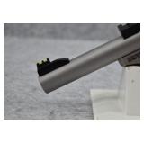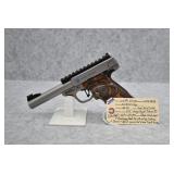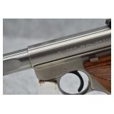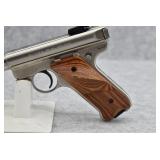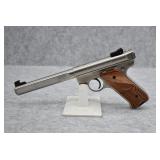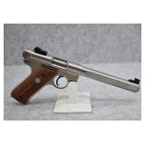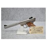400R. Ruger – Mod. Mark II 50th Anniversary 1949-1995 – 22LR Cal. Semi-Auto Pistol – w/4¾” Barrel w/Blade Front Sight and Rear Adjustable Rear Notch Sight – Blued Finish – w/Ruger Silver Eagle Checkered Black Pistol Grips – w/2 Factory Detachable Mags – w/Red Hard Case, Manual, and Accessories