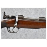 364R. Remington – U.S. Mod. 1917 – 30-06 Springfield Cal. Sporterized Bolt Action Rifle – Cut Down to 21½” Barrel w/Blade Front Sight and Ladder Adjustable Rear Sight – Blued Finish – w/Pistol Grip Sporterized Wood Stock w/Metal Butt Plate w/Leather Recoil Cover – w/Military Style Leather Sling