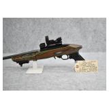 73. Thompson Center – Mod. Hawken – 50 Cal. Black Powder Percussion Rifle – w/29” Octagon Barrel w/Blade Front Sight and Adjustable Rear Sight – Blued Finish w/Case Hardened Lock – w/Stright Grip Wood Stock w/Raised Cheek Rest, Brass Butt Plate, Trigger Guard, Patch Box – w/Double Set Triggers – w/Ram Rod
