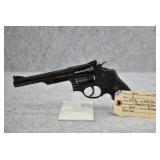 11R. Smith & Wesson – Mod. 57 “41 Magnum Target” – 41 Mag. Double Action Revolver – w/6” Barrel w/Red Ramp Blade Front Sight and White Outlined Adjustable Rear Notch Sight – Blued Finish – w/S&W Medallion Diamond Wood Checkering Target Grips, Target Hammer, and Target Trigger (3 T’s) – w/Factory Wooden Case, S&W Screwdriver, and Cleaning Tools