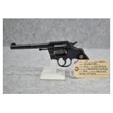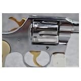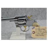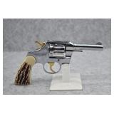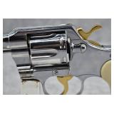 373R. Colt – Mod. Official Police – 38 Spl. Cal. Double Action Revolver – w/4” Barrel w/Ramp Blade Front Sight and Notch Rear Sight – Chrome/Gold Finish – w/Stag Like Grips