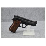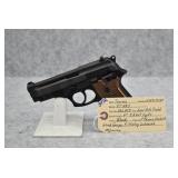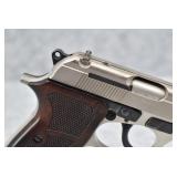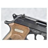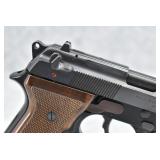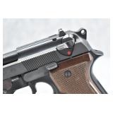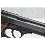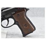 392R. Beretta – Mod. 92 SB Compact – 9mm Para Cal. Semi-Auto Pistol – w/4 3/8” Barrel w/Dot Blade Front Sight and Adjustable White Notch Rear Sight – Blued Finish – w/Checkered Wood Grips – w/1 Factory Detachable Mag