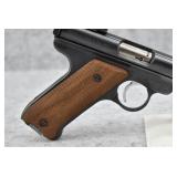 400R. Ruger – Mod. Mark II 50th Anniversary 1949-1995 – 22LR Cal. Semi-Auto Pistol – w/4¾” Barrel w/Blade Front Sight and Rear Adjustable Rear Notch Sight – Blued Finish – w/Ruger Silver Eagle Checkered Black Pistol Grips – w/2 Factory Detachable Mags – w/Red Hard Case, Manual, and Accessories