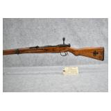384R. Japanese – Mod. Type 99 – 7.7 Jap Cal. Bolt Action Military Rifle – w/26” Barrel w/Guarded Front Sight and 1500 Meter Adjustable Rear Sight – Grey Finish – w/Pistol Grip Full Military Wood Stock w/Metal Butt Plate – w/Matching Numbered Bolt – w/Ground Mum