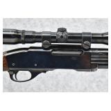363R. Remington – Mod. 760 Gamemaster Carbine – 308 Win. Cal. Pump Action Rifle – w/18½” Barrel w/Beaded Front Sight – Missing Rear Sight – Blued Finish – w/Pressed Checkered Capped Pistol Grip Wood Stock w/Pachmayr Recoil Pad and Forearm – w/Tasco 2-7x32 Scope - w/Redfield Rings and Base – w/Mag